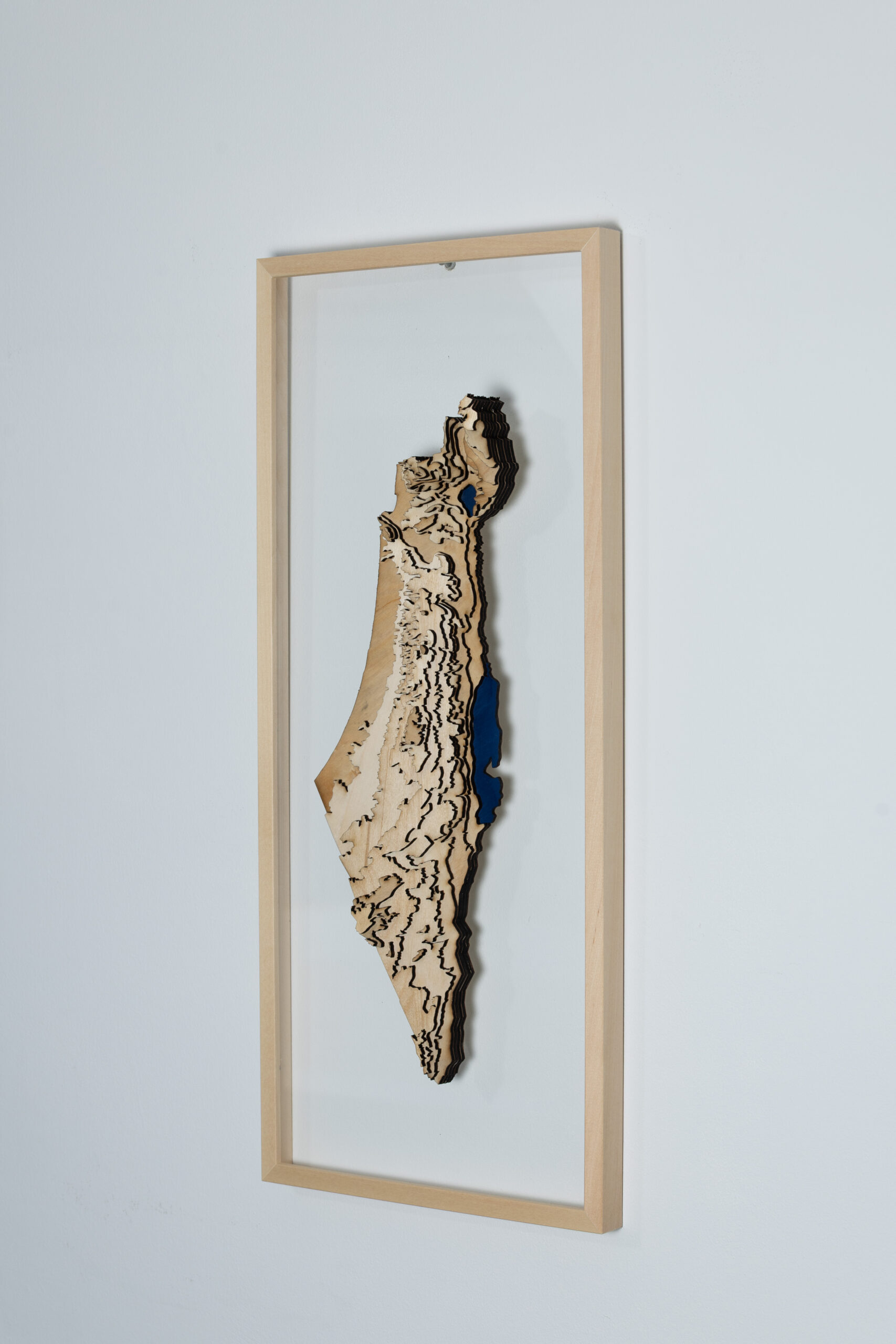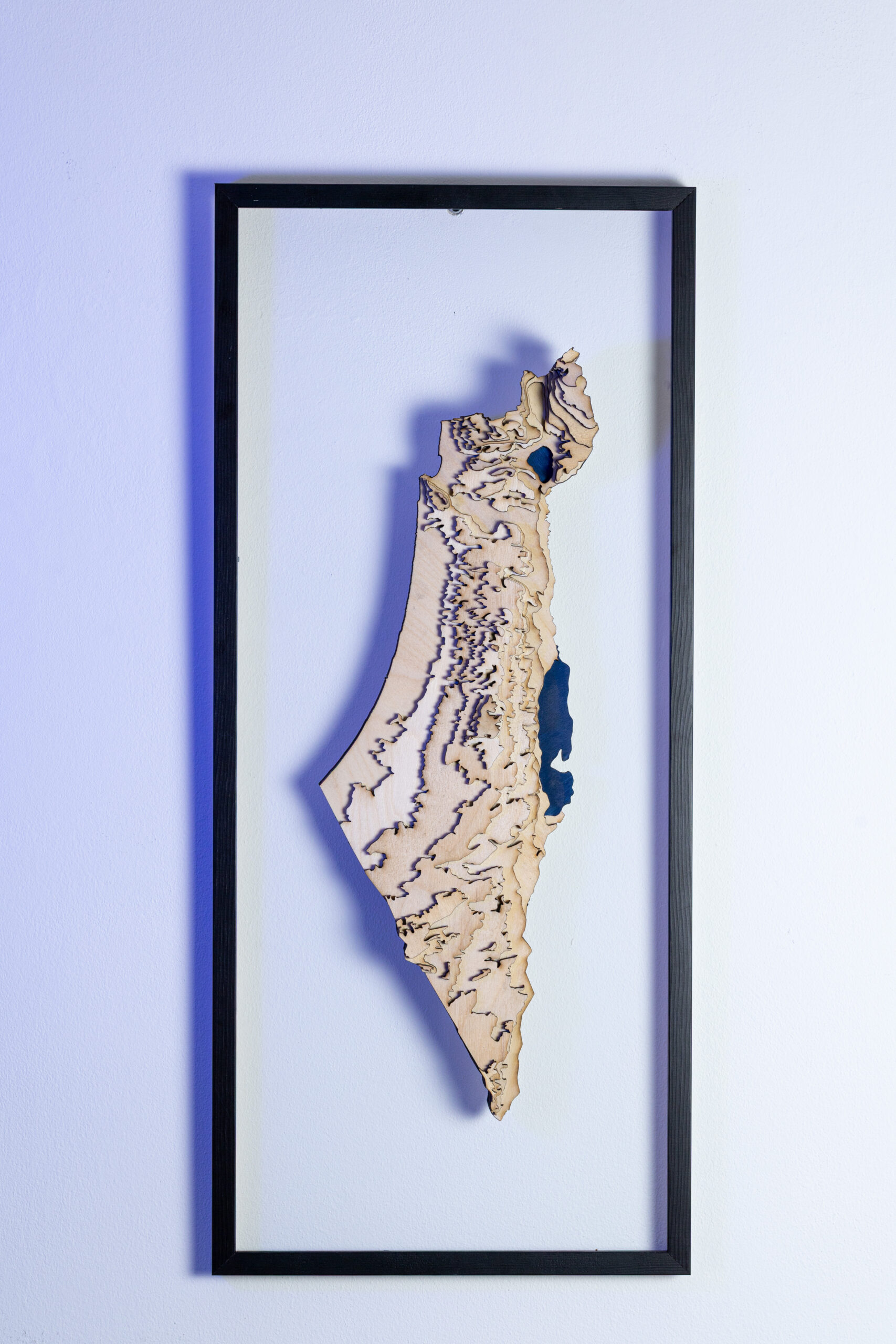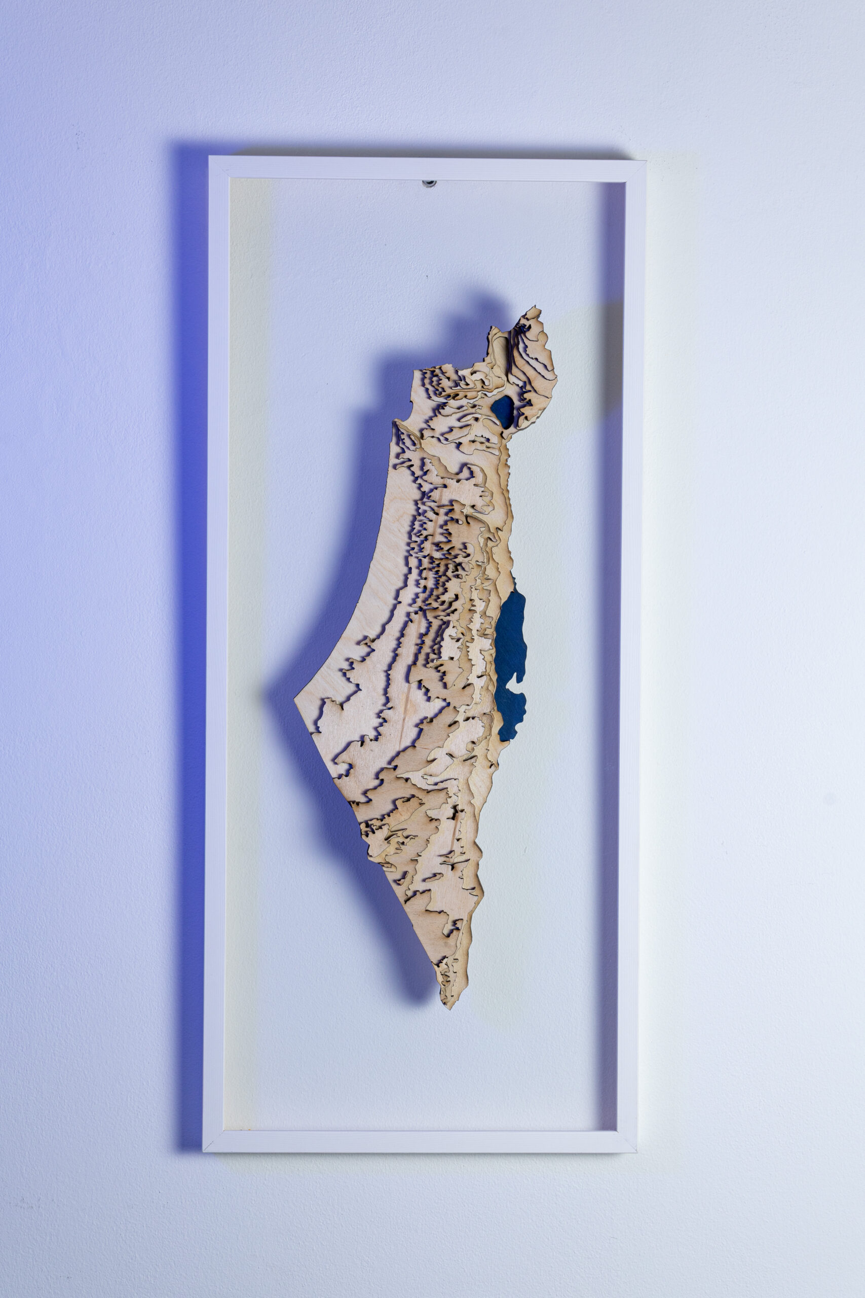 אחרי סבב ראשון בתחילת המלחמה, רציתי להכין שיהיה לי משהו של ישראל בבית, חיפשתי משהו אומנותי אבל גם שמחובר למציאות ולאדמה שלנו. הגעתי למצב שבניתי את המפה, מפה טופוגרפית שהדבר היחיד שקיים בו זה הקווי גובה עם המח והכינרת
